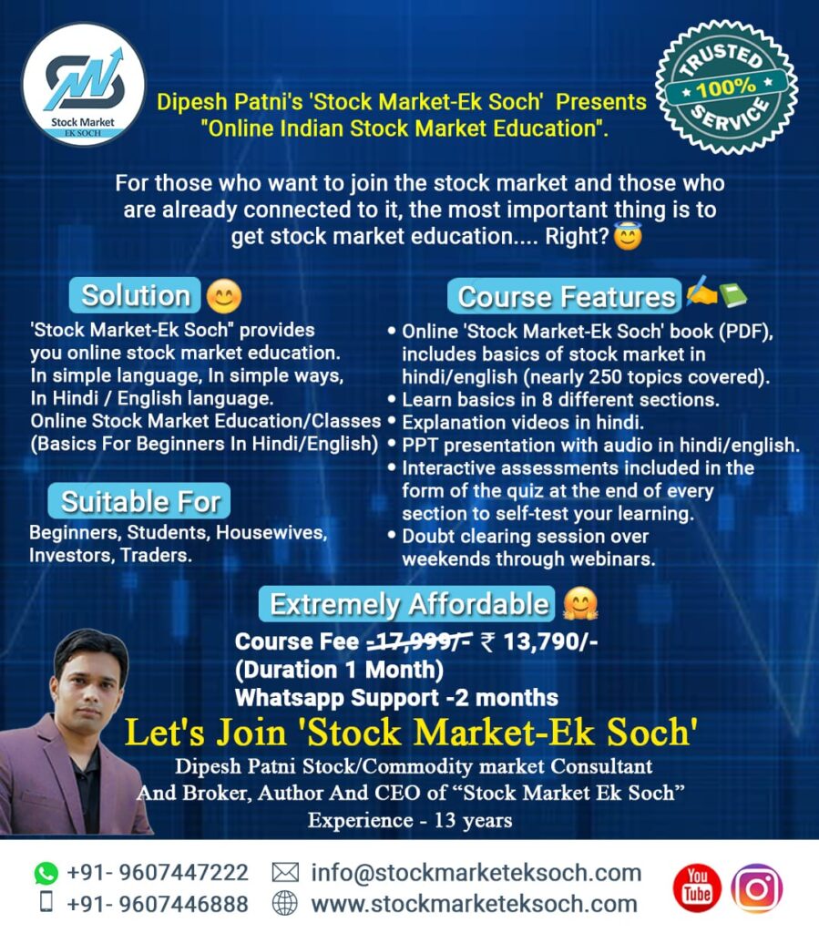 With the help of ‘Stock Market Ek Soch’, you can understand stock market in easy words and easy ways. It works as online consultancy.
